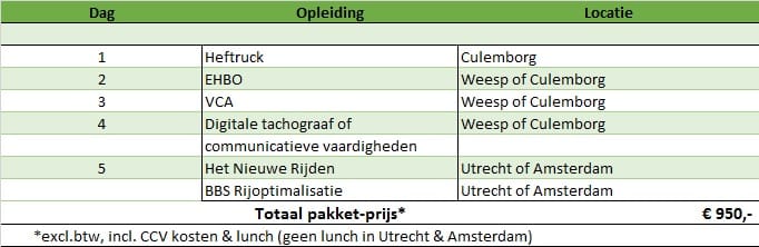 •  Voordeelpakket: Dit is een pakket samengesteld met de meest afgenomen opleidingen.